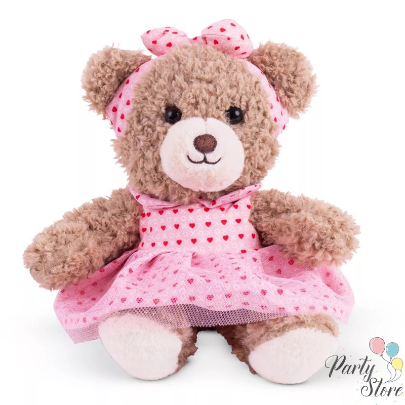 Плюшено мече с розова рокля и панделка – подарък за момиченце, 33 см