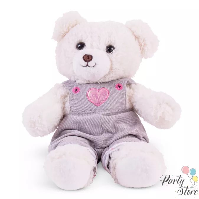 Плюшено мече с гащеризон и сърце – подарък за дете или любим човек, 33 см