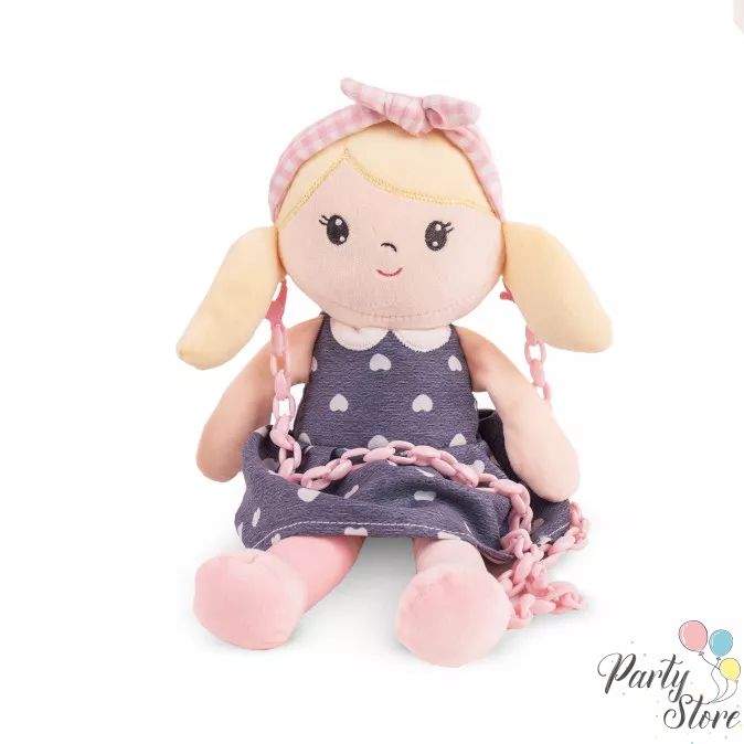 Плюшена кукла с рокля и чантичка – руса, 35 см | Подарък за момиченце