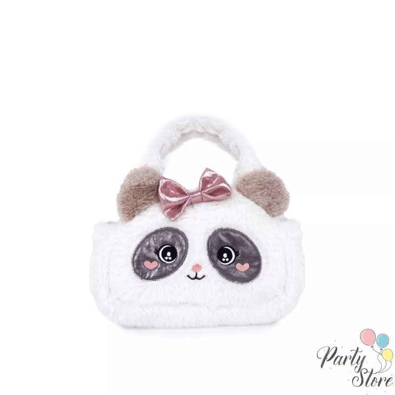 Плюшена чанта Панда с панделка – бяла, 22×17 см | Подарък за момиченце
