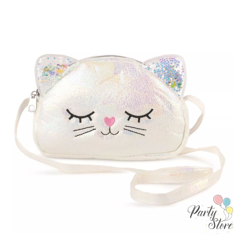 Блестяща детска чанта Коте – бяла, 19 см | Подарък за момиченце