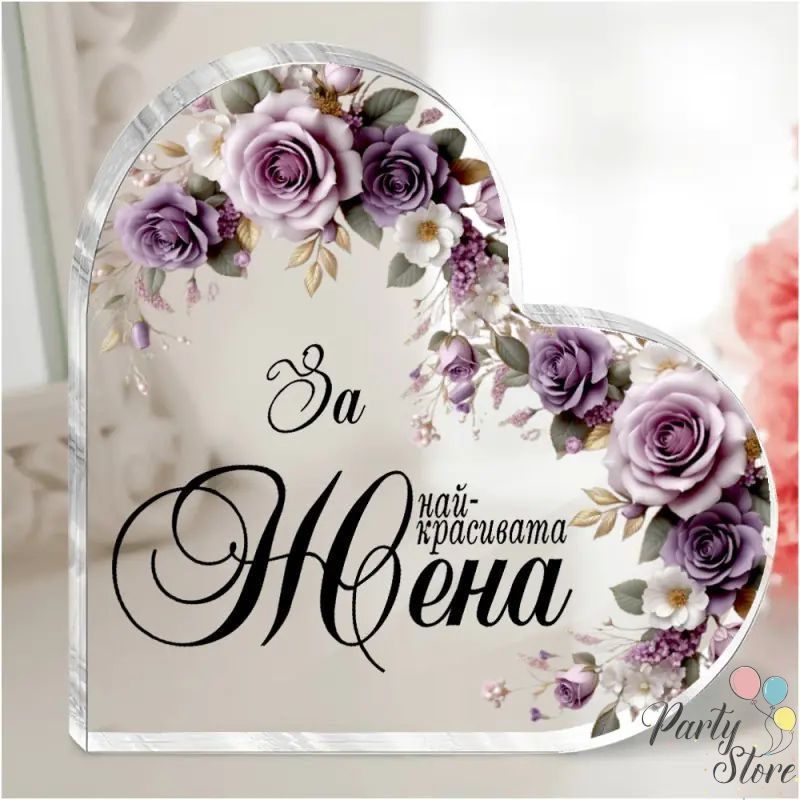 Акрилно сърце „За най-красивата жена“ с послание – 9,5×9,5 см | Подарък за жена