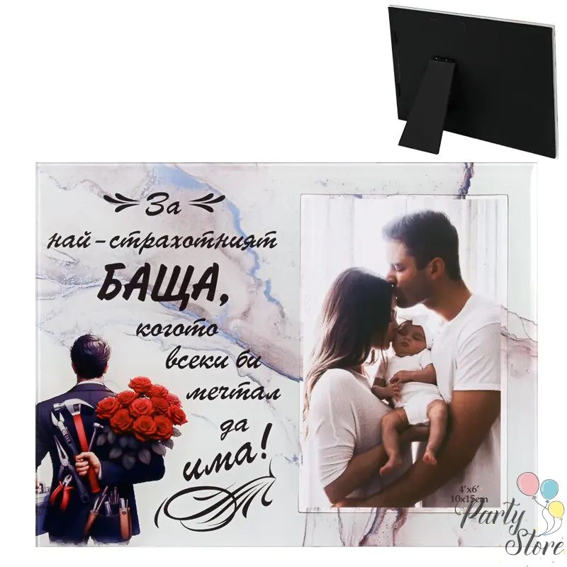 Стъклена фоторамка „За най-страхотния баща“ | Подарък за баща, рожден ден или семеен празник