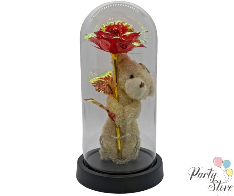 Светещо мече с червена стъклена роза под купол – 25 см | Романтичен подарък