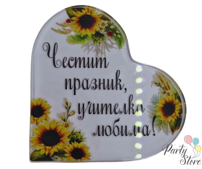Акрилно сърце „Честит празник, учителко любима!“ – подарък за учител (9,5 см)