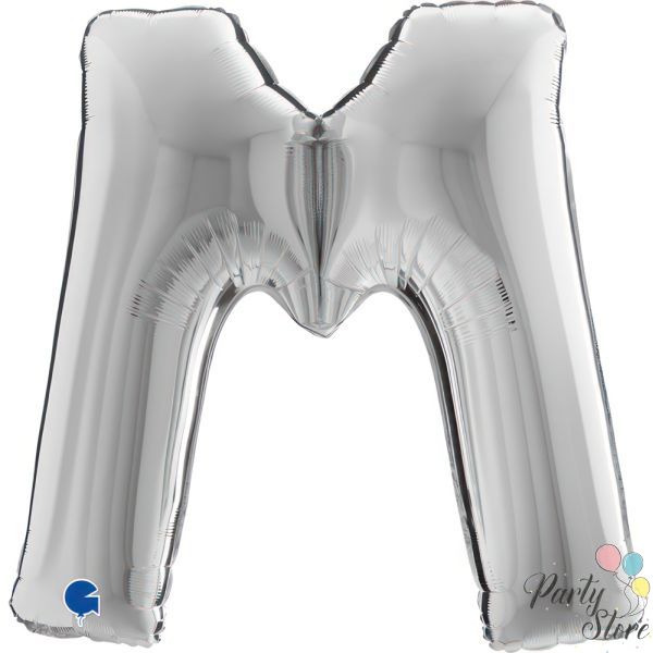 Фолиев балон буква „M“ 40 инча / 101 см – сребрист