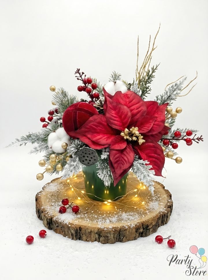 Кледна декорация в зелена керамична кашпа "Коледна магия"