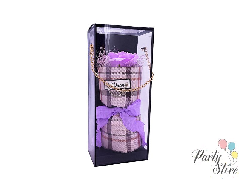 Букет в кутия със сапунена роза Fashion , 21см x10см, Lavender