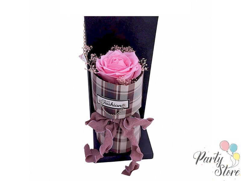 Букет в кутия със сапунена роза Fashion , 21см x10см, Pink