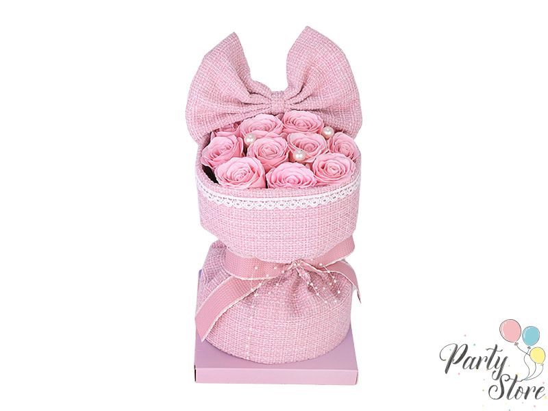 Букет със 11 сапунени рози и перли For You , 22см x17см, Розов