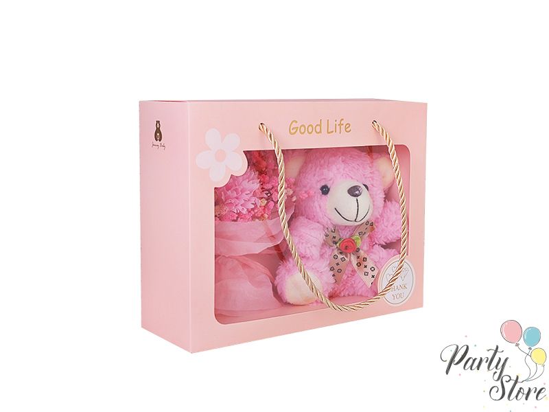 Плюшено мече с букет в кутия Teddy , 17х22х7.5см, Pink