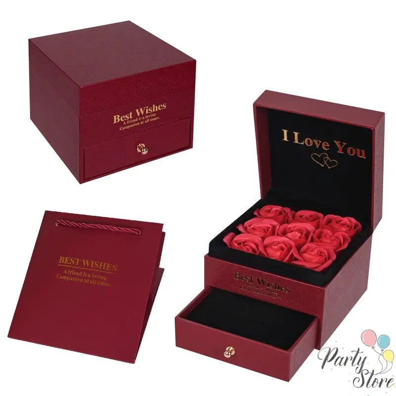 Подаръчна кутия за бижута с 9 сапунени рози и подаръчна торбичка