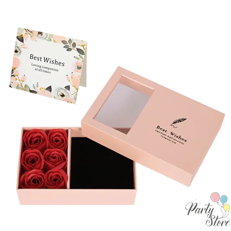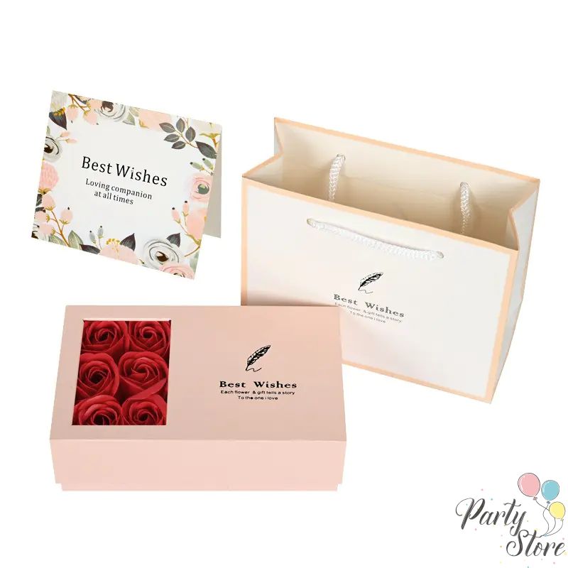 Елегантна кутия за бижута с 6 сапунени рози и подаръчна торбичка