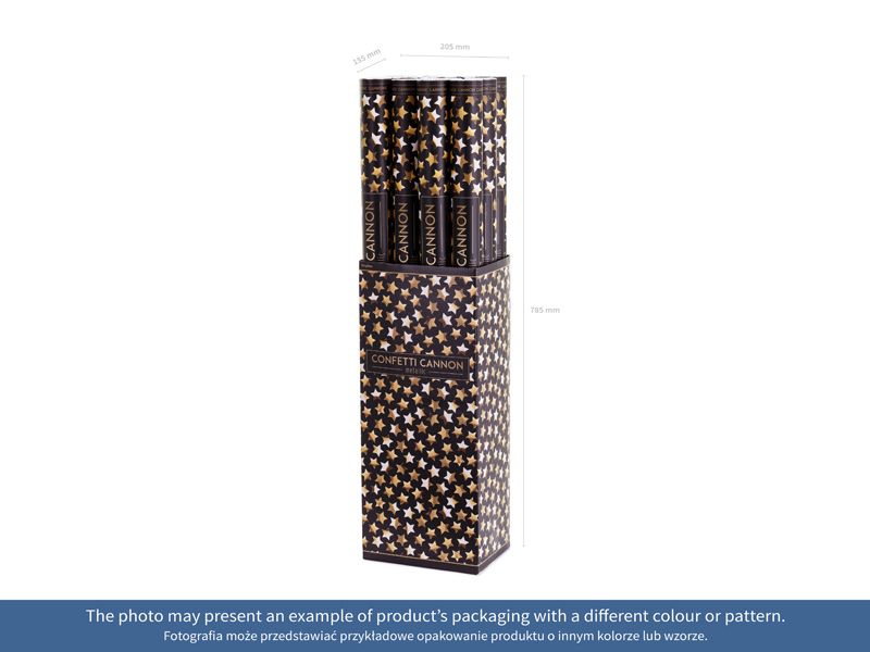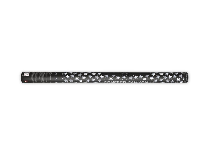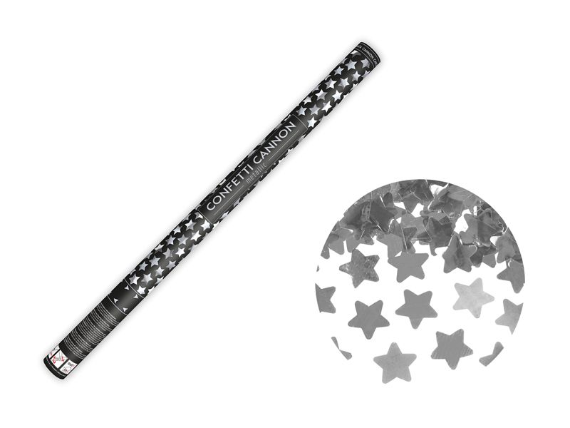 Конфети оръдие със звезди, сребърно, 80 см
