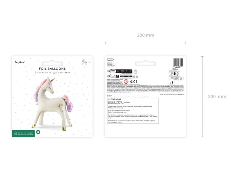 Стоящ фолиев балон Еднорог, 95x86 см, микс