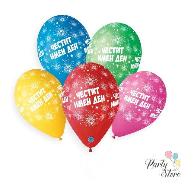 Комплект 5 бр. Балони с Печат „Честит Имен Ден“ 30 см