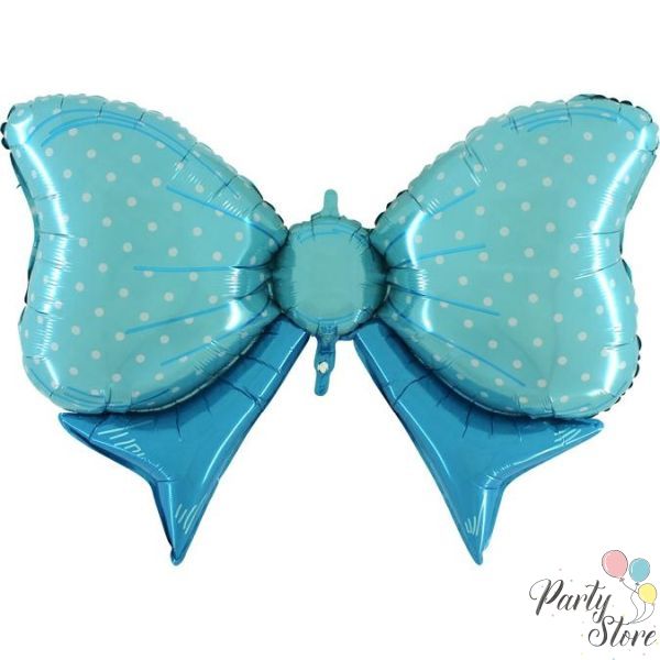 Голям фолиев балон „Синя панделка на точки“ – 35" (89 см)