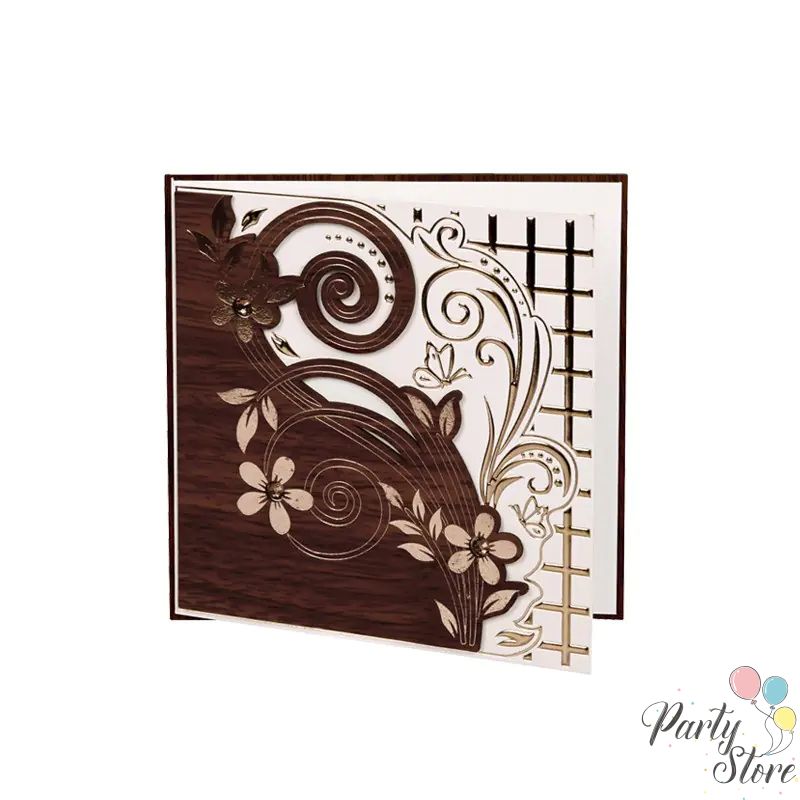 Изключителен детайл: Прецизното изрязване на флоралните елементи и спиралите създава красива 3D дълбочина на картичката.